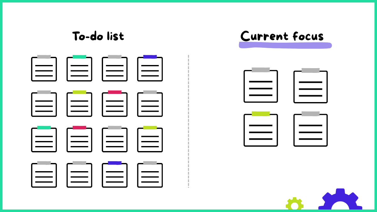 A better approach? Use the gaps between meetings. Those 30- or 45-minute slots that aren’t quite long enough for deep work are perfect for knocking out quick tasks and small fixes. It’s an easy way to keep your to-do list under control. And it gives you quick wins and a sense of progress that long, complex tasks simply can’t offer straight away.